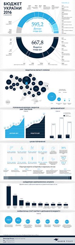 Об украинском бюджете обычно вспоминают, когда очередной политик предлагает повысить в несколько раз зарплаты и пенсии. Впрочем, значение этого документа намного шире: это не просто перечень затрат, а своеобразный анонс того, чем будет жить страна следующий год. Эксперты компании Baker Tilly подготовили инфографику, в которой изобразили весь бюджет 2016 года. Мы выбрали самые важные факты о планах Минфина на следующий год.
