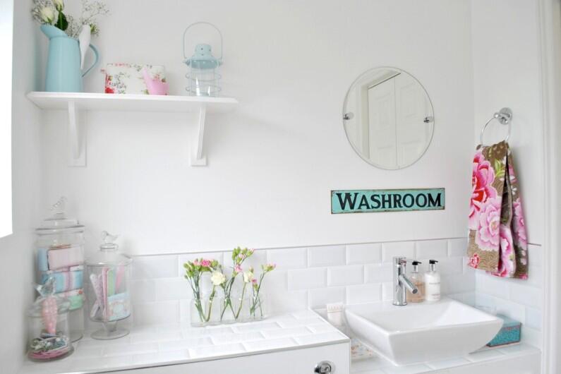 На полках и в нишах в ванной комнате расставьте свечи с бодрящим ароматом мяты, лимона или жасмина. Купите новые принадлежности для мыла и крема нежных пастельных оттенков. А возле раковины или туалетного столика можно поставить небольшие вазочки с цветущими веточками или композицией из искусственных пионов и тюльпанов (они хоть и не пахнут, но сделают ванную по-весеннему легкой и красивой).