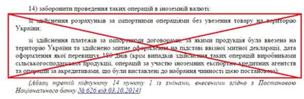 Введено было еще одно ограничение – на осуществление валютных платежей по импортным договорам, согласно которым продукция была ввезена на территорию Украины и прошла таможенное оформление на основании ввозной декларации, если дата оформления этой декларации превышает 180 дней.