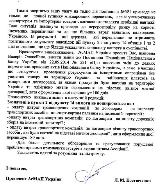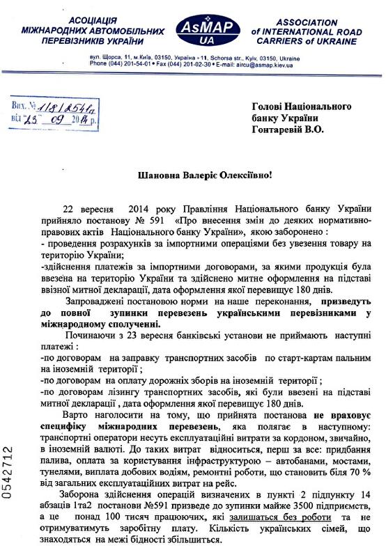 А вот и более реальные претензии. "Внедренные НБУ нормы, по нашему убеждению, приведут к полной остановке порядка 3500 предприятий, которые занимаются международными перевозками, а это свыше 100 тыс человек, которые могут остаться без работы" – говорится в письме Ассоциации международных автомобильных перевозчиков Украины (АсМАП).