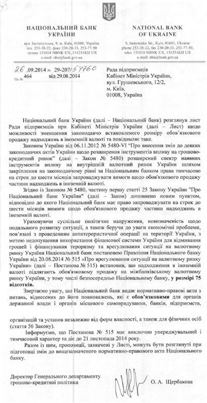 Как следует из переписки Совета предпринимателей при Кабмине с регулятором, НБУ на эти требования не соглашался. Он ссылался на право вводить временные, до шести месяцев, требования к продаже валютных поступлений. Такое право за регулятором закрепляет закон о расширении инструментов влияния на денежно-кредитный рынок (№5480).