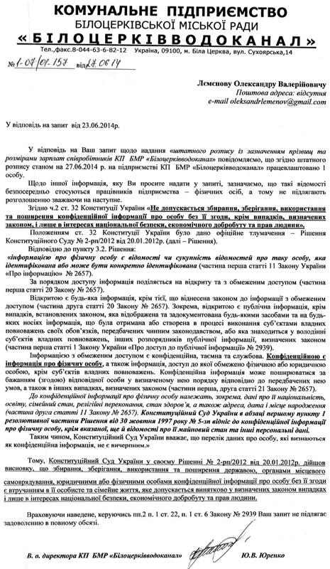- Работают ли связанные с вами люди в концессионере "Белоцерковвода"? Работали ли связанные с вами люди в КП "Белоцерковводоканал"?