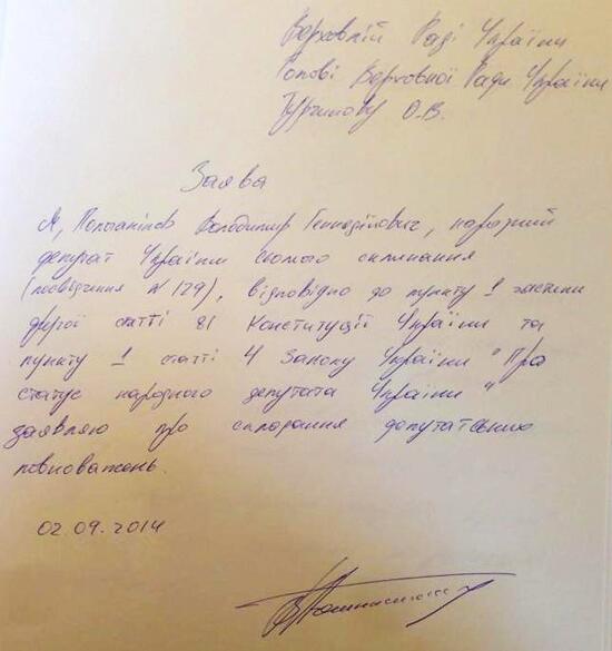 P.S. 2 вересня 2014 року Володимир Полочанінов написав заяву про складення повноважень народного депутата. Це стало наслідком, як він зазначив, "цинізму і лицемірства у стінах парламенту".