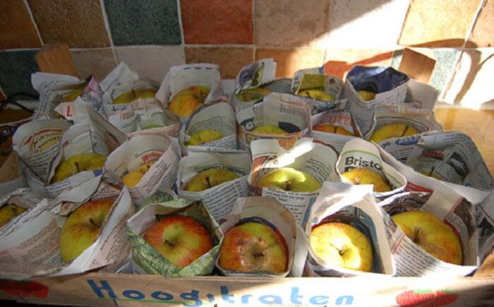 Чтобы фрукты быстрее зрели, тоже понадобятся старые газеты. Работа предстоит кропотливая, ведь придётся в них завернуть каждый фрукт по отдельности.