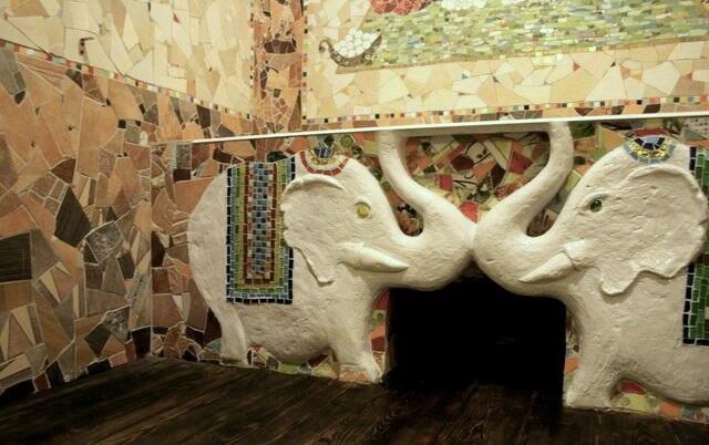 Я с самого детства на стройке, поэтому стаж у меня накопился приличный. Могу построить дом от фундамента до крыши, а потом еще и оформить его как внутри, так и снаружи. У меня нет специального образования, как и художественного — не было возможности получить. Но было очень большое желание реализовывать свои идеи — и я учился. Сам, сидя на кухне с резцами, чтобы резать по дереву, и клещами, чтобы понять, как класть мозаику. Так было и со всем остальным.