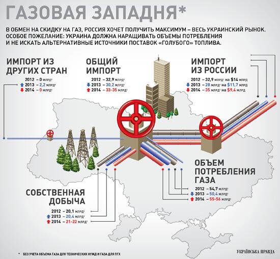Во-вторых, в обмен на временную скидку "Газпром" требует от Украины закупать как можно больше голубого топлива. Министр энергетики и угольной промышленности Эдуард Ставицкий прогнозирует увеличение поставок газа из России до 33-35 млрд кубометров.