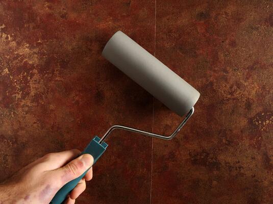Вся следующая процедура полностью повторяет процесс стандартной оклейки обоев. Вкратце, укладку начинают с любого угла помещения, полотна начинают наклеивать от потолка. Обои прижимают к поверхности стены и проходят по ним специальным шпателем из резины. Необходимо отметить, что шпатель движется от центральной оси к краям, что позволяет выдавить из-под полотна лишний клей и пузырьки воздуха.