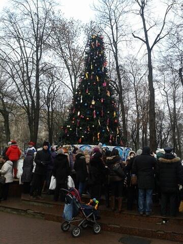В этом году местная елка удивила всех: зеленая красавица была не просто настоящей – она и в дальнейшем будет радовать святошинцев своей красотой, ведь праздничными огоньками засияло живое дерево, которое растет у входа в Святошинской РГА. Еще одной особенностью праздничной елки стало то, что помимо традиционных елочных украшений, ее украсили игрушками, созданными детьми.
