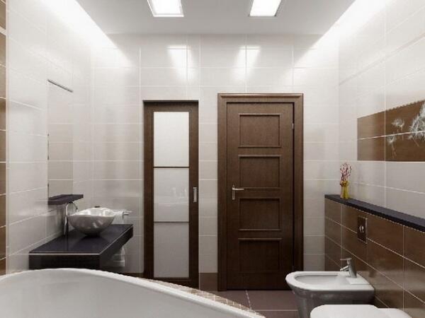 Как же быть, если дверь санузла, идеально соответствует остальным дверям в квартире, но не сочетается с внутренним интерьером ванны? Существует два варианта.