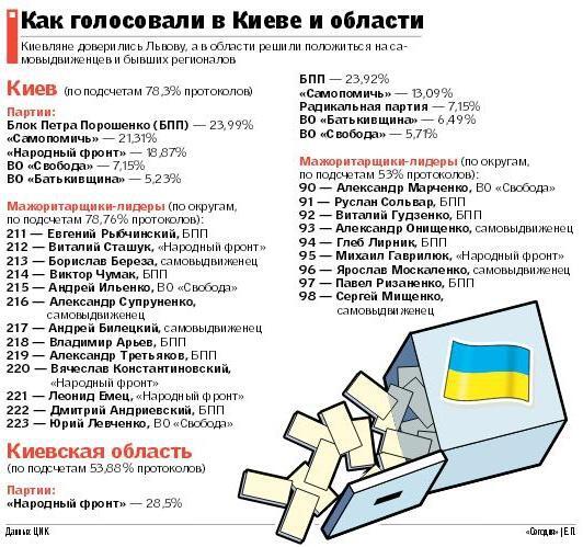 Предварительные результаты голосования киевлян на досрочных парламентских выборах, которые прошли в стране 26 октября (на момент сдачи газеты в печать, по Киеву было подсчитано 78,3% голосов, а по области — 53,88%), стали весьма неожиданны. Если на выборах в Киевраду, прошедших в конце мая, безусловную победу одержал УДАР, объединенный с "Солидарностью" Петра Порошенко (они "взяли" рекордные 78 мест из 120), то спустя полгода приоритеты киевлян изменились.