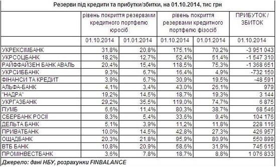 Однак у 2014 році були й "неординарні" ситуації, коли банки розформовували резерви, через що знижувався рівень покриття ними кредитного портфеля. Зрештою, на тлі важкої ситуації у системі це дозволяє фіксувати великі прибутки. Йдеться, насамперед, про Промінвестбанк та ВТБ.