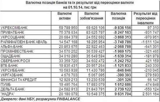 Крім того, є банки, у яких довга валютна позиція, тобто валютні активи, перевищують валютні пасиви. Завдяки їй вони отримали "плюс" за переоцінкою валюти. Йдеться, передусім, про банк "Надра".