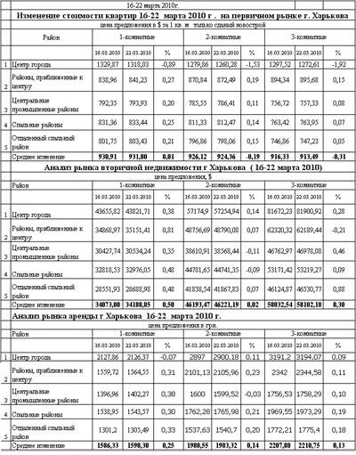 За период с 16 по 22 марта количество покупателей на рынке недвижимости Харькова уменьшилось на 5,04%, количество выставленных объектов уменшилось на 5,32 %.