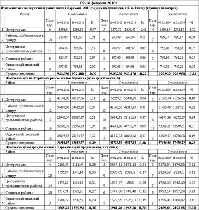 Как сообщили в компании "SV Development", за период с 7 по 14 февраля 2010 года средняя цена продажи 1-3 комнатных квартир на вторичном рынке в Харькове снизилась на 0,14% ($1) до $ 946 за 1 кв.м. При этом самым дешевым оставался Орджоникидзевский район, со средним показателем $808/кв.м., самым дорогим Киевский район, где средняя цена продажи составила $1156/кв.м.