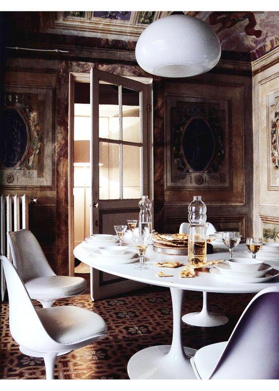 Столы скандинавских дизайнеров неслучайно популярны в современных интерьерах. Настоящие хиты – стол и стулья из серии «Тюльпан» Ээро Сааринена. Их легко узнать по изящной ножке, напоминающей цветочный стебель.