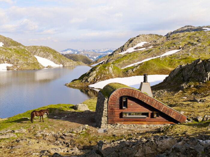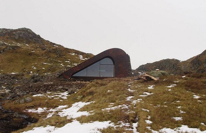 Архитекторы норвежской фирмы Snøhetta стали авторами небольшого домика Hunting Lodge , построенного в живописной горной местности в западной Норвегии на краю фьорда Åkrafjorden . Перед ними стояла задача: добиться полного слияния постройки с окружающей средой. Необычные изогнутые очертания хижины также напоминают формы традиционных норвежских горных жилищ.