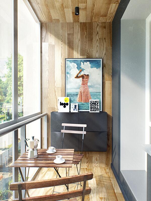 Для отделки ванной мы взяли керамическую плитку 20х20 см, керамический гранит и доску. В туалете также мы использовали керамическую плитку 20х20 см и 30х30 см, а также деревянные рейки. Лоджию полностью отделали ламинатом.