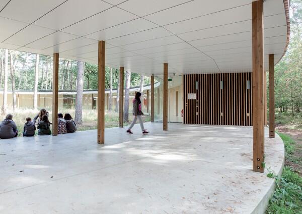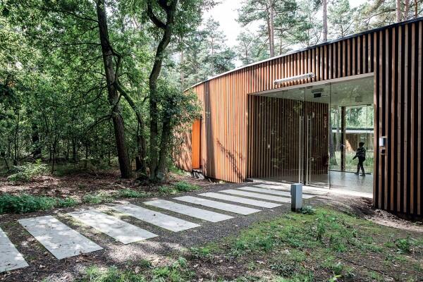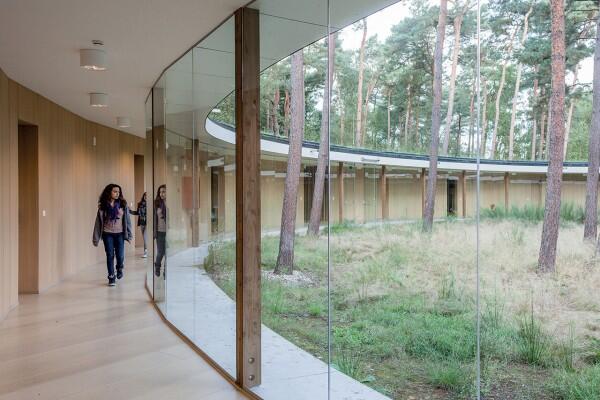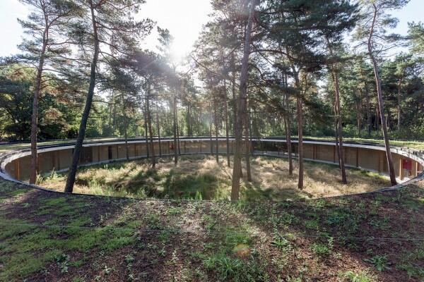Огромная деревянная буква "О", окружающая сосновый лес - так выглядит хостел, построенный в северо-восточной части Бельгии архитектурной компанией Studio Bernardo Secchi & Paola Viganò.
