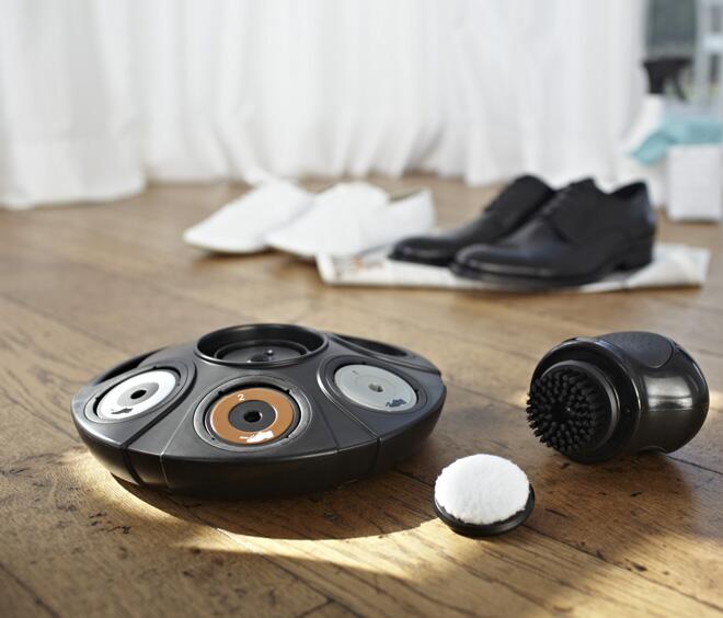 Помните, с каким упоением начищал свои ботинки Фрэнк Андервуд (да мало ли кто еще!) в сериале «Карточный домик»? Но он-то делал это в приступе бессильной ярости, а мы с вами пока спокойны и можем воспользоваться достижениями прогресса вместо, конечно, более эффективного, но требующего немалых усилий ручного труда. Заведите себе, например, устройство Schuhputzstation с тремя насадками для чистки обуви и двумя для полировки. Механическая часть работает как от сети (длина шнура 2 метра), так и от батареек.
