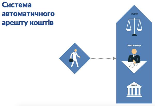 14 січня 2016 року президент вніс до Верховної Ради проект закону"Про внесення змін до деяких законодавчих актів щодо запровадження системи автоматизованого арешту коштів у цивільному та господарському судочинстві".