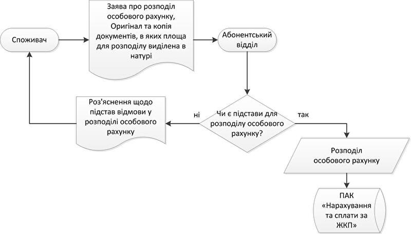 Розподіл особового рахунку проводиться на підставі заяви та поданих документів. За відсутності підстав споживачу надається письмова відповідь із роз’ясненнями.