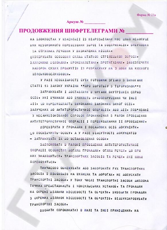 Згідно з шифрограмою, карт-бланш на такі дії Ільїн отримав від міністра оборони Павла Лєбєдєва. «Відповідно до рішення Міністра оборони України щодо залучення сил і засобів Збройних Сил України до участі у антитерористичній операції…», - йдеться в документі. Це – пряма дорога в Гаагу як для Лєбєдєва, так і для Ільїна.