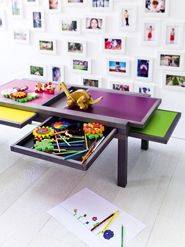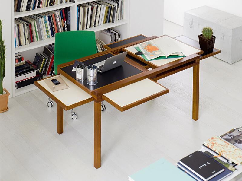 Выдвижные части стола имеют углубления – их можно вынуть, перевернуть и использовать в качестве лотков. Оригинальное изобретение Вуарнессона придется по вкусу людям творческим, которым, как правило, всегда не хватает места для хранения всей профессиональной «утвари»: карандашей, маркеров, красок, кистей, альбомов и блокнотов .