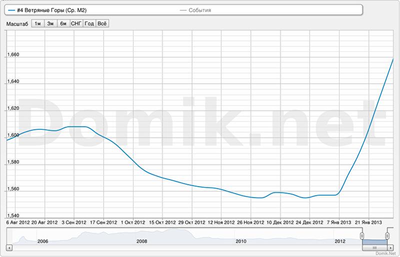 Что касается массивов на окраинах, в которых цены выросли, наиболее интересная ситуация наблюдается на Ветряных горах.