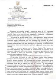 Пытаясь выяснить у сотрудника ведомства, стоит ли отправлять повторный запрос и как его надо составить, чтобы все-таки узнать информацию, получили такой комментарий: "В письмах информация предоставлена в полном объеме. КМУ должен за три месяца разработать и утвердить механизм свободного доступа к реестру, право на который возникло со вступлением в силу закона. В настоящее время Вы можете получить информацию из Государственного реестра исключительно о СОБСТВЕННОМ имуществе. Проектом нового порядка предоставления информации из Государственного реестра предусмотрено вступление закона в силу с 1 января 2015 года, но нельзя гарантировать этот срок в принятом постановлении".