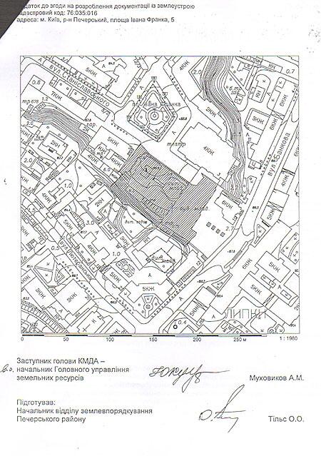 За документами, замість парку, зліва від Національного академічного театру Франка планується зведення шестиповерхової адміністративно-офісної будівлі з підземним паркінгом.
