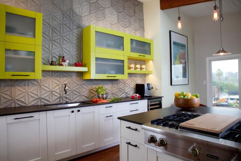 - Выложить кухонный фартук их плитки цвета кожуры лайма.