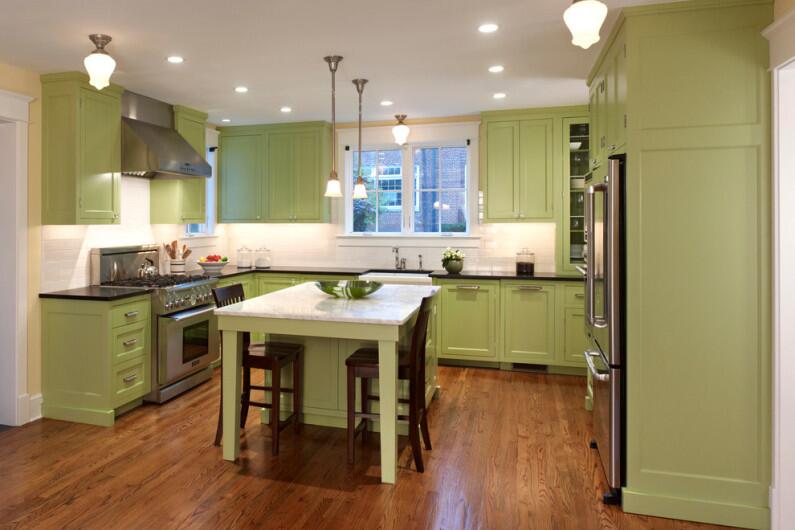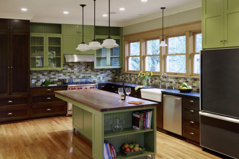 Зеленый цвет в интерьере кухни