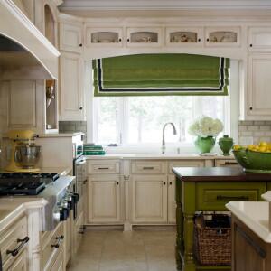 Спокойные и пастельные оттенки зеленого, к примеру, мятный, травяной, фисташковый, больше подойдут для классических фасадов кухонной мебели с филенчатыми или резными дверками из массива дерева или МДФ, а также, для оформления кухни в стиле прованс. Эти тона можно использовать довольно активно для всей мебели, не опасаясь влияния цвета.