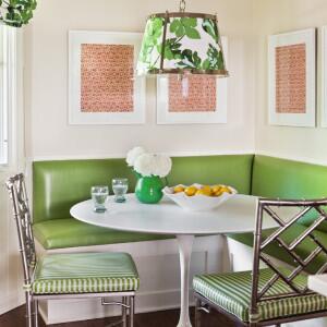 - Поставить зеленые стулья в зоне столовой или возле барной стойки.