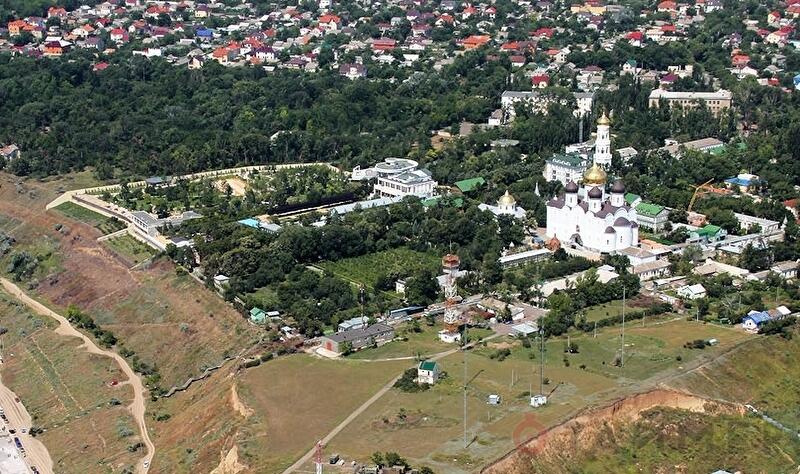 Усадьба - ближний из двух домов между монастырём и зелёной зоной ![]()