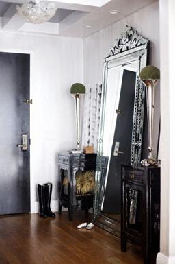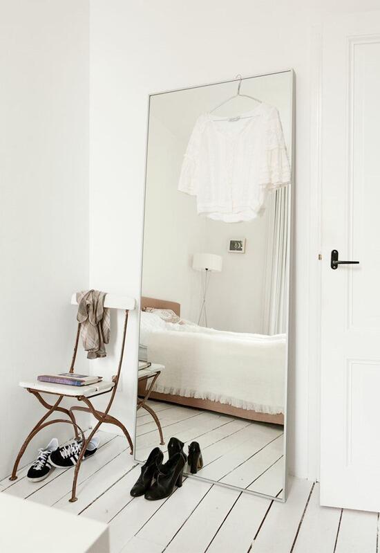 Зеркало большого размера, да еще и в достойной раме сделает честь любому интерьеру, практически в любом стиле. Все, что вам нужно — это выбрать для него место и просто опереть зеркало о стену. Если такой вариант кажется вам слишком богемным, вы можете шкаф купе купить уже с зеркальными дверцами — эффект увеличения пространства будет тот же.