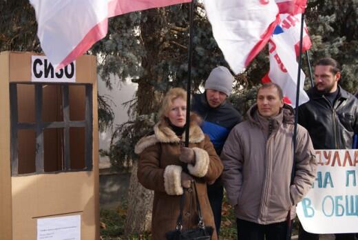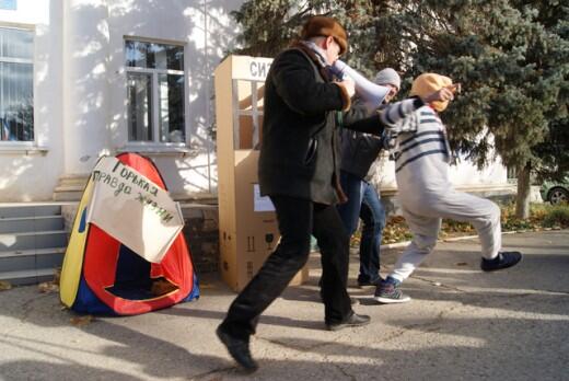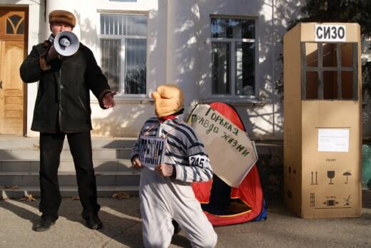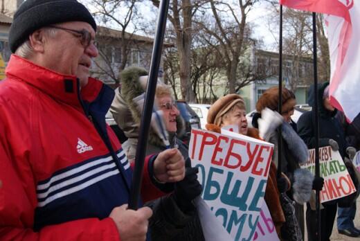 Жильцы общежитий устроили у здания суда в Саках митинг-представление