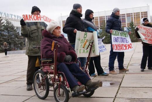 В декабре Ассоциация жильцов общежитий Крыма провела протестный митинг у здания городского суда в Саках. В рамках митинга состоялось театрализованное представление с участием актера, изображавшего А. Пряхина. В конце представления А. Пряхина поместили в следственный изолятор.