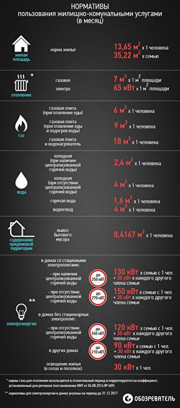 Согласно новым правилам, в Украине действуют следующие социальные нормативы пользования ЖКУ для предоставления жилищных субсидий: