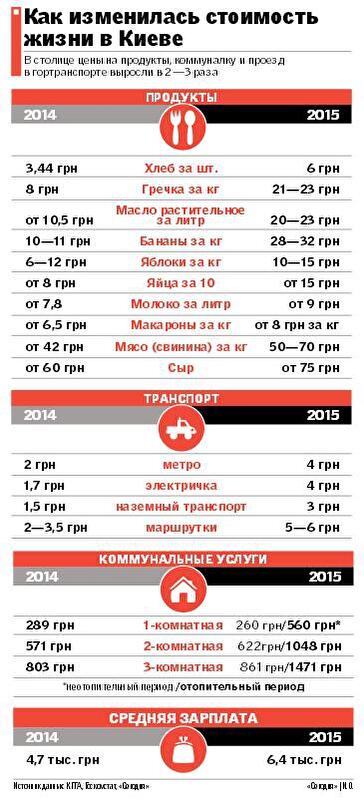 ТРАТЫ. Многие жалуются, что и раньше особо не шиковали, но теперь хватает только на основные нужды. "Общий доход нашей семьи из двоих взрослых и двоих детей (одному — 9, второму — 2 года) около 9 тыс. грн — зарплата и детская помощь. "Коммуналка" за 2-комнатную квартиру обходятся нам примерно 1100 грн. На проезд при нынешних ценах нужно тратить минимум 25—30 грн в день одному человеку. С учетом, что нужно не только доехать с работы и на работу, а еще и завезти-забрать ребенка из школы, ездить в магазин, получается минимум 1,5 тыс. грн в месяц нужно на транспорт. На продукты уходит еще около 1000 грн в неделю, потому что детям нужны и фрукты, и молочное, и конфетки. На эти нужды — почти 7 тыс. А ведь нужно покупать одежду, раз в две недели — подгузники (это еще 600 грн)… Денег впритык. На отдых или крупную покупку, например технику или мебель, отложить не получается", — рассуждает киевлянка Елена Прокопенко. А ведь у многих доход намного ниже — минзарплата сейчас всего 1218 грн.