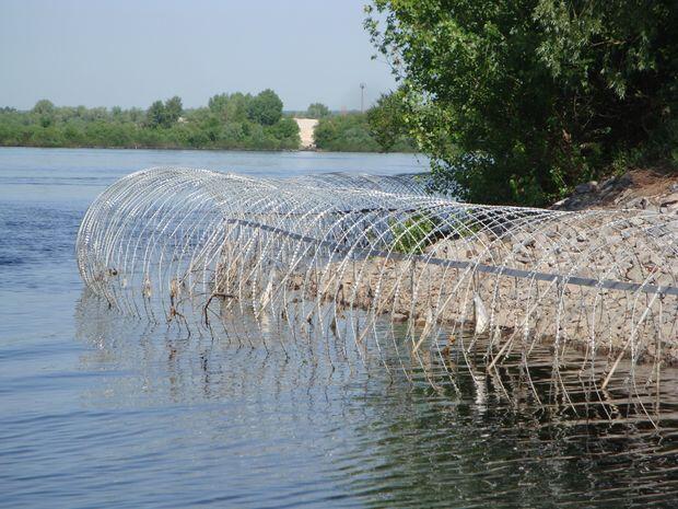 Построившись, его владельцы сразу же начали отгораживаться бетонным забором. Мало того, по воде протянули колючую проволоку!