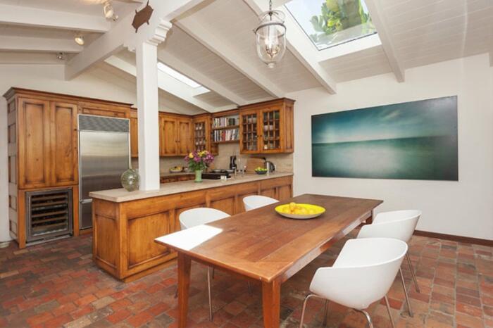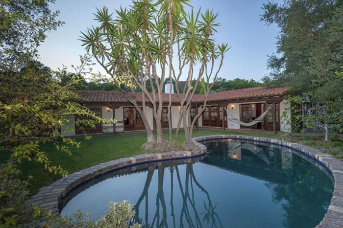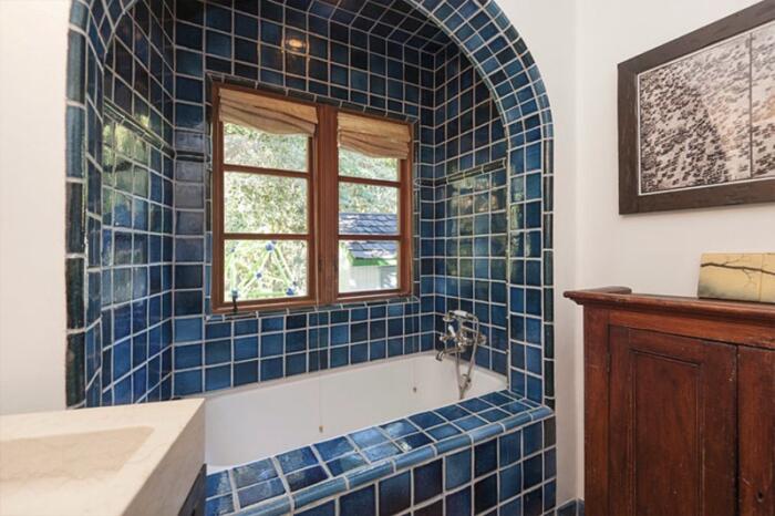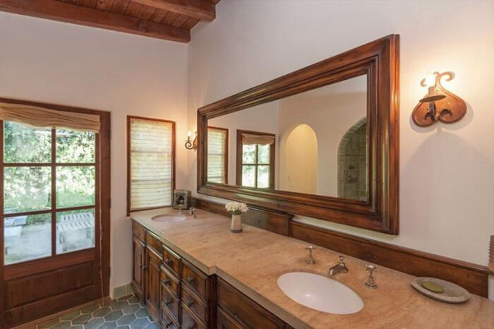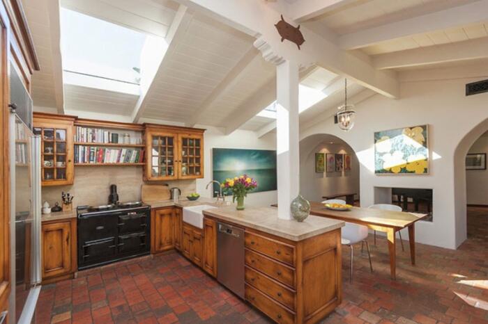 Одноэтажный особняк общей площадью около 180 квадратных метров в испанском стиле декорирован терракотовой плиткой, а также может похвастаться деревянными полами и изогнутыми арками.
