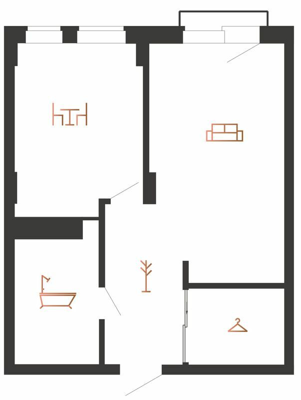 Однокомнатная планировка квартиры 50 м² в ЖК Авторский, Ивано-Франковск