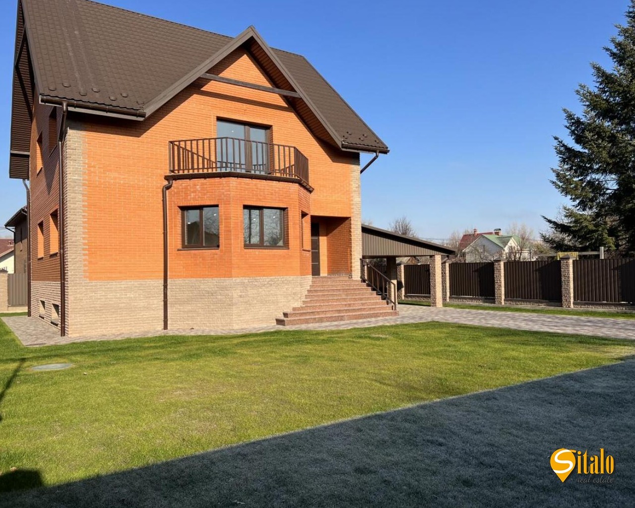 Цегляний будинок з новим ремонтом на Осокорках, загальна площа 250 кв.м. Побудований з якісної цегли, облицьований декоративною цеглою. Планування: -Підвал 80 кв.м, облаштований під бомбосховище, з можливістю використання під сауну або господарські приміщення. -Перший поверх: кухня, вітальня, гардеробна, санвузол, комора. -Другий поверх: дві дитячі кімнати, спальня власників з гардеробною та виходом на балкон, санвузол, вихід на горище. Комунікації та технічні характеристики: -Тепла підлога на всіх поверхах -Опалення від теплового насосу -Електропостачання 20 кВт -Свердловина 70 м, система водоочистки -Септик Територія: -Ділянка 6 соток, рівна, облаштована газоном та автоматичним поливом -Огороджена парканом, відкатні ворота з механізмом -Є навіс для автомобіля Будинок розташований на тихій вулиці, серед сусідів, які проживають постійно. Відстань до метро Славутич – 2 км. У пішій доступності магазини, транспорт, озеро. Без комісії Код об'єкта 15759