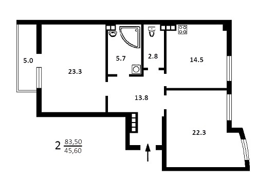 Двокімнатне планування квартири 84 м² в ЖК на вул Гоголівська, 43, Київ